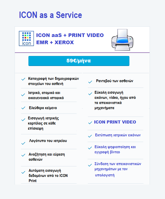 Αποκτήστε τώρα το ICON PRINT VIDEO μαζί με το ICON EMR και τον XEROX 8580 Printer με πλάνο μηνιαίας συνδρομής υπηρεσίας